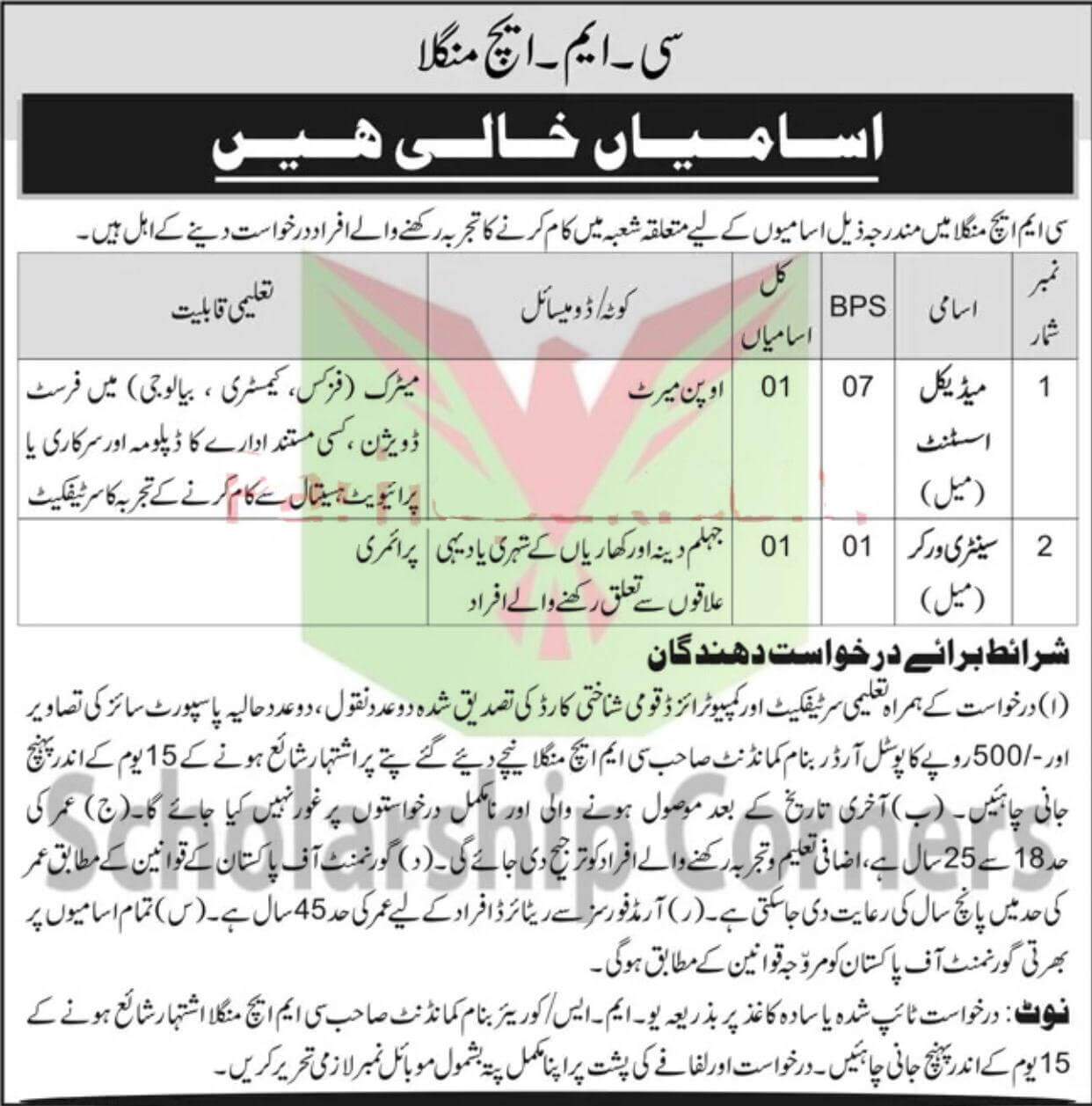 To apply for CMH Mangla Jobs 2023 | Pak Army CMH Jobs, candidates need to fulfil the following criteria: