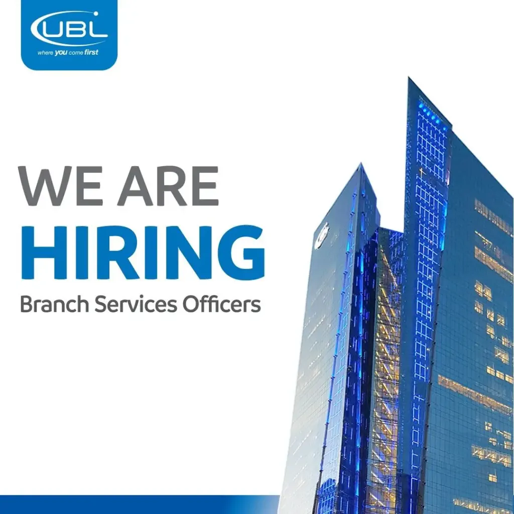 - UBL is looking for Branch Service Officers for its branches. Fresh graduates (males and females) from all around Pakistan are eligible.